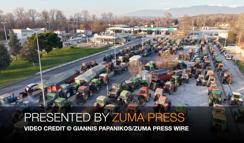 December 19, 2025, Promachonas, Greece: Greek farmers block with their tractors Promachonas border crossing to Bulgaria. Greek farmers continue their blockades and protest over rising costs and delayed subsidies.