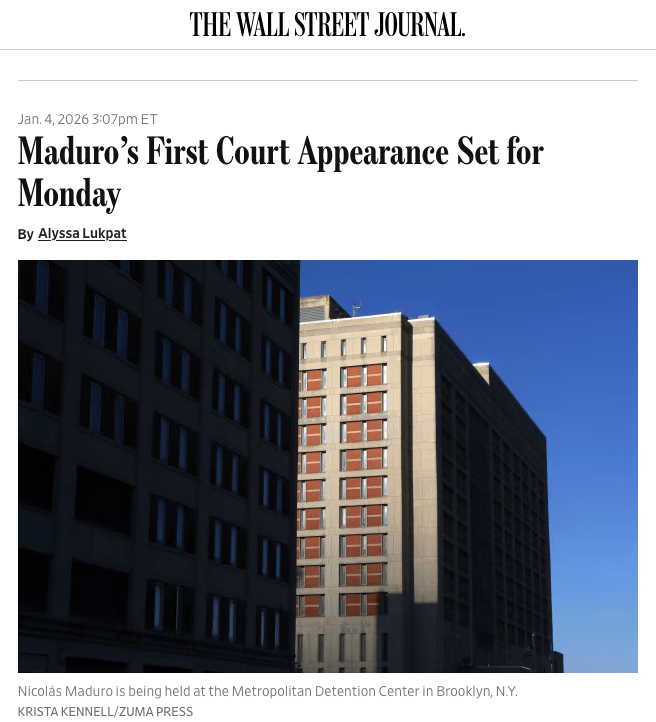 January 4, 2026, Brooklyn, New York, USA: Nicolü¡s Maduro, the ousted President of Venezuela, is being held at the Metropolitan Detention Center (MDC) in Brooklyn, New York, following a dramatic US military operation to capture him and his wife from their home in Caracas. They arrived on Saturday night/early Sunday morning to face charges, prompting international reactions and protests, particularly as the MDC is a notorious federal facility. (Credit Image: © Krista Kennell/ZUMA Press Wire)