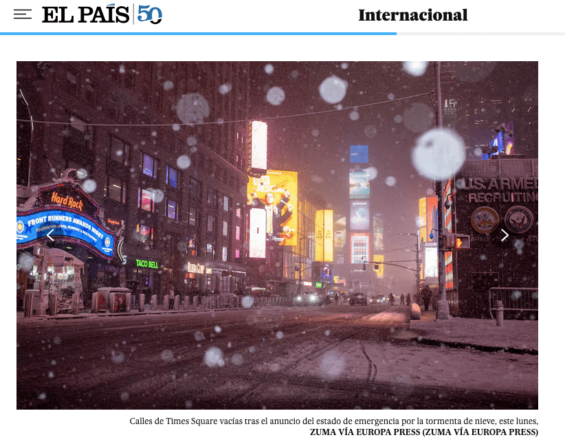 February 22, 2026, New York, New York, USA: Tourists walk past Times Square’s iconic American Flag as New York braces for a potential 28 inches of snow as a historic blizzard hits the area. (Credit Image: © Syndi Pilar/ZUMA Press Wire)