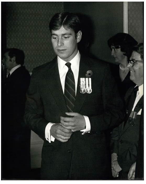 1982 – Andew’s Campaign Medals: Prince Andrew proudly displays his medals won in action. Not for the brave way he tackled his critics for the holiday he spent with porno-movie actress Koo Stark, but for his part in the Task Force recapture of the Falkland Islands. Andrew, middle son of Queen Elizabeth, was a combat helicopter pilot during the campaign and earned the medal ribbons awarded to all active members of the Task Force. Unfortunately for Andrew, he is now remembered more for his active service with Koo in the Caribbean than for his bravery in the South Atlantic. (Credit Image: © Keystone Press Agency/ZUMA Press Wire)