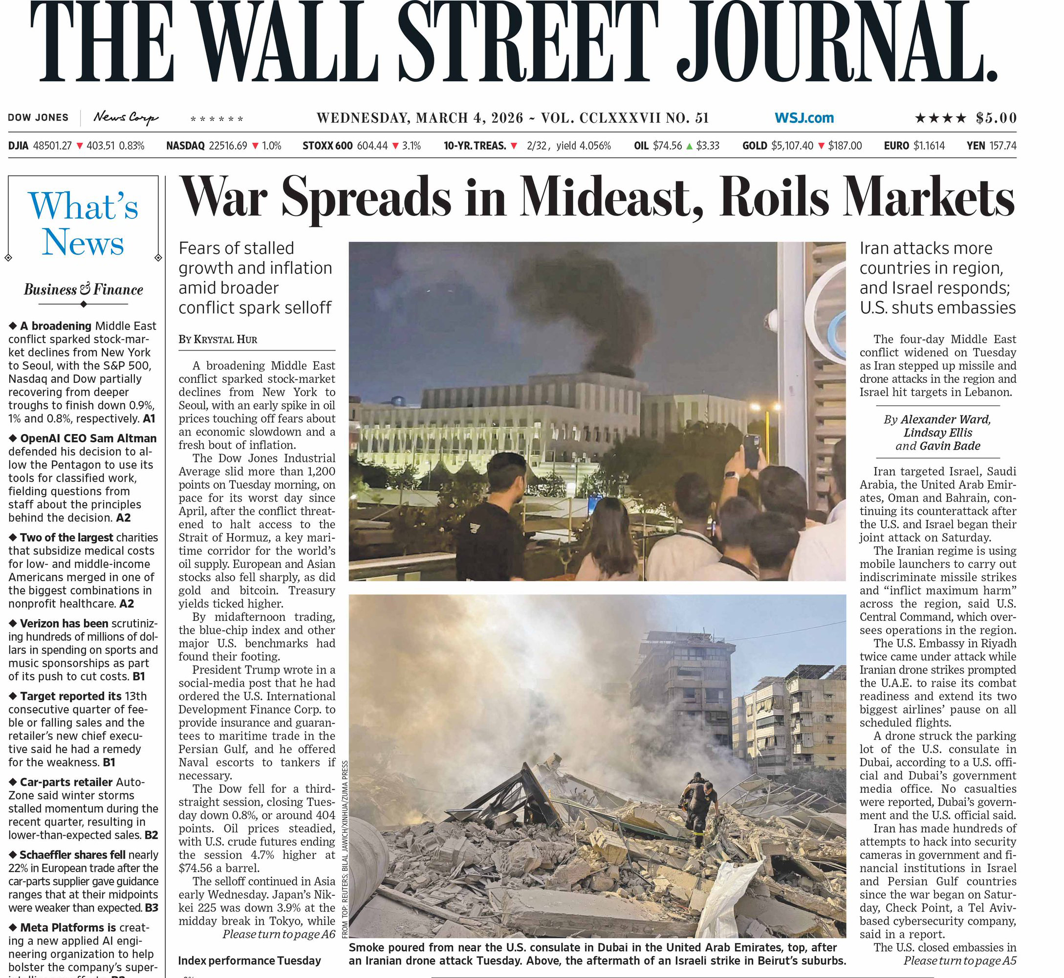 BOTTOM IMAGE: March 3, 2026, Beirut, Lebanon: Rescue workers search through the rubble after Israel’s overnight bombing of Beirut’s southern suburbs. Two members of the Islamic Health Authority were killed on Tuesday in an Israeli airstrike on the southern Lebanese town of Siddiqine, the state-run National News Agency (NNA) reported. The escalation extended beyond the border region to Beirut’s southern suburbs, where Israeli warplanes carried out a new series of intense airstrikes without prior warning, causing significant damage to targeted buildings, NNA said. (Credit Image: © Bilal Jawich/Xinhua via ZUMA Press)
