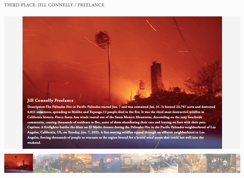 Bravo to ZUMA’s Jill Connelly Earning Third Place in NPPA Los Angeles 2025 Photo Essay Category Posted by ZUMAPRESS.com on April 13, 2026 Posted in: ZUMALAND. Leave a comment Scott Mc Kiernan, Founder & Editor-in-Chief, ZUMA Press Share this: Share on Facebook (Opens in new window) Facebook Share on LinkedIn (Opens in new window) LinkedIn Share on X (Opens in new window) X Like Loading... Related Posts navigation ← Bravo to ZUMA’s Ringo Chiu Earning Second Place in NPPA Los Angeles 2025 Photo Story Category