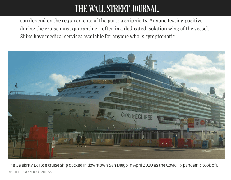 ZUMA’s Rishi Deka on The Wall Street Journal Posted by ZUMAPRESS.com on April 28, 2026 Posted in: ZUMALAND. Leave a comment April 11, 2020: The Celebrity Eclipse cruise ship docked in downtown San Diego during the COVID-19 Pandemic. (Credit Image: © Rishi DekaZUMA Wire) Scott Mc Kiernan, Founder & Editor-in-Chief, ZUMA Press Share this: Share on Facebook (Opens in new window) Facebook Share on LinkedIn (Opens in new window) LinkedIn Share on X (Opens in new window) X Like Loading... Related Posts navigation ← Congrats to ZUMA’s Yasser Alaa Mobarak on being named one of Wanderlust Visions 2026 winners