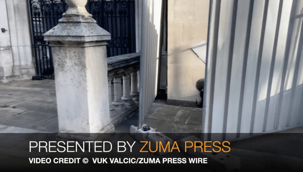 September 8, 2025, London, England, United Kingdom: The latest artwork by elusive street artist Banksy at the Royal Courts of Justice, depicting a judge hitting a protester with a gavel. The artwork was swiftly covered up after being discovered on the wall of the court in the early morning, but has since been uncovered.