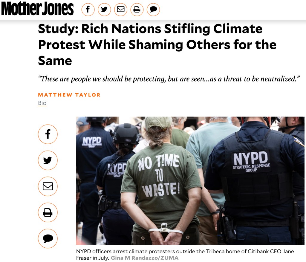 July 27, 2024, New York, New York, USA: Outside the Tribeca home of Citibank CEO Jane Fraser (Not Pictured) NYPD Strategic Response Group officers lead a climate activist wearing a shirt that reads ‘NO TIME TO WASTE!’ to a police van after her arrest for engaging in an act of civil disobedience blocking the entrance to Fraser’s building to protest Citi’s funding of fossil fuels. The demonstration’s theme is the children harmed and displaced by the climate crisis around the world. The action is part the Summer of Heat campaign against Wall Street’s investment in fossil fuels. (Credit Image: © Gina M Randazzo/ZUMA Press Wire)