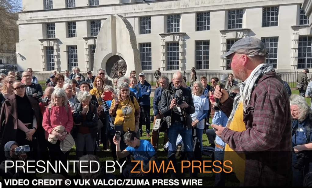 April 3, 2025, London, England, United Kingdom: Quakers, various activists and other protesters stage a silent demonstration outside New Scotland Yard following the arrests of six Youth Demand activists at Quaker Meeting House in Westminster.