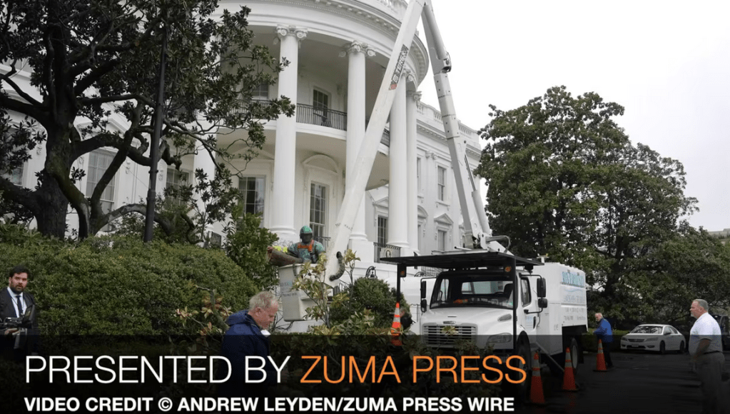 April 7, 2025, Washington, District of Columbia, USA: The Jackson Magnolia, the oldest tree on the White House grounds, was removed today following President Trump’s statement last week that it was in bad shape and was now a fall hazard.